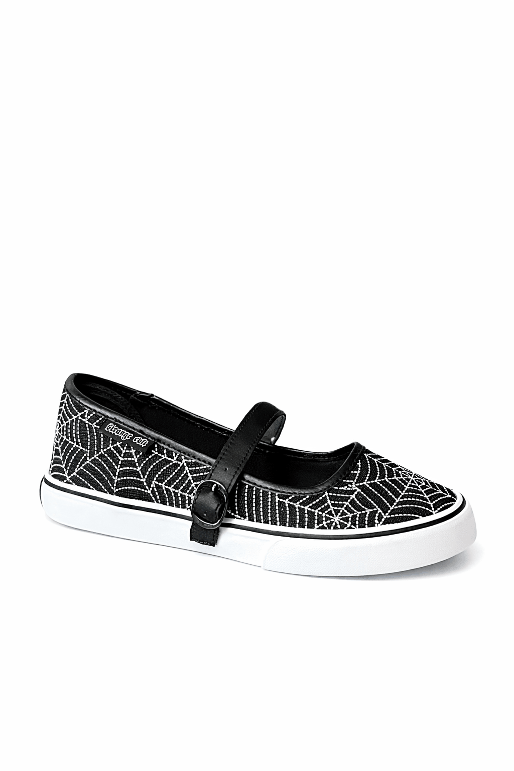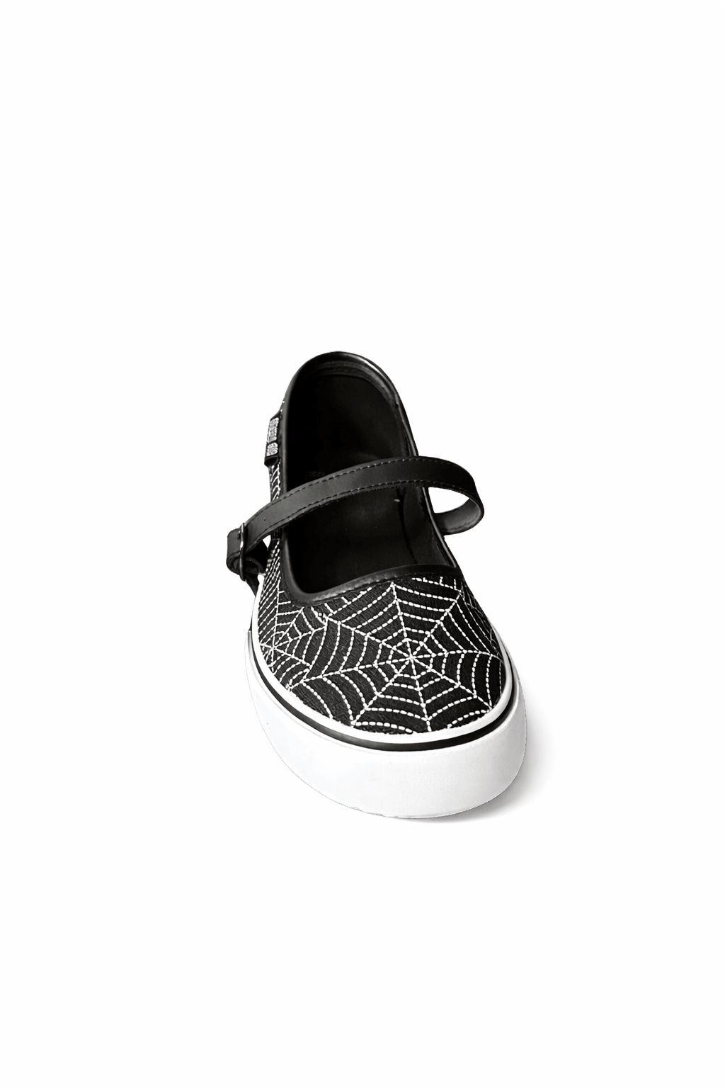 Step into effortless style with the Nina Web sneaker. Featuring a mary jane strap with buckle detail, this versatile shoe combines comfort with edge. The black canvas upper and webbed design create a modern look, while the white rubber outsole keeps you grounded. Perfect for everyday wear—slip it on and go.