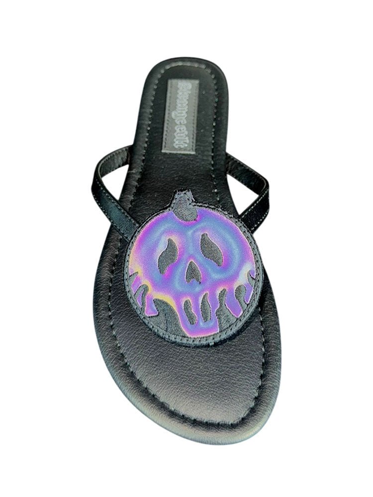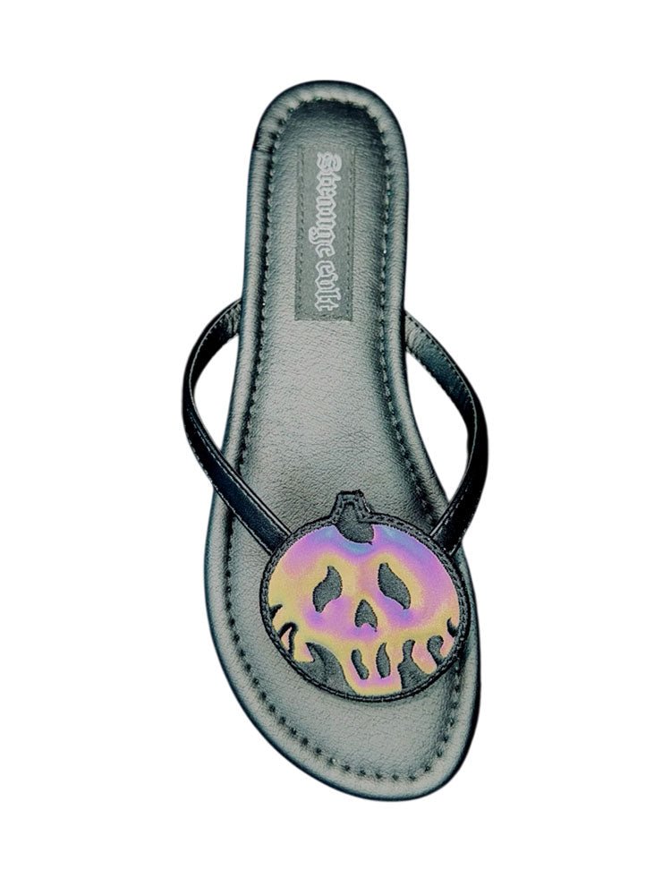 Step into the spooky season with the Betty Poison Pumpkin in black and reflective glory. This vegan leather sneaker features a sleek black upper and adjustable vegan leather straps for a secure fit. The standout reflective poison pumpkin detail adds an eerie glow and playful edge, perfect for those who embrace the darker side of style. Built on a durable black rubber outsole, these kicks keep you grounded while your vibe stays delightfully wicked.
