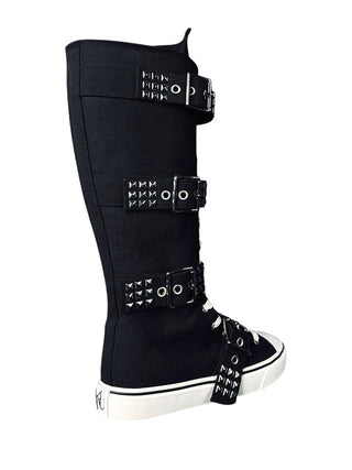 Step out in style with RAWR XD Stud in black and silver. The canvas upper and chrome pyramid studs add edgy flair. Plus, the inner zipper and lace closure provide a secure fit while the rubber toe cap and outsole offer durability. Make a statement in these unique kicks!